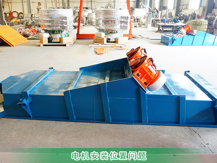 直線篩振動電機的安裝位置有三種分別為底部、兩側、上部。如果振動電機安裝位置靠近進料口就會出現篩面物料運行一定距離后速度降低終停留在篩面;
