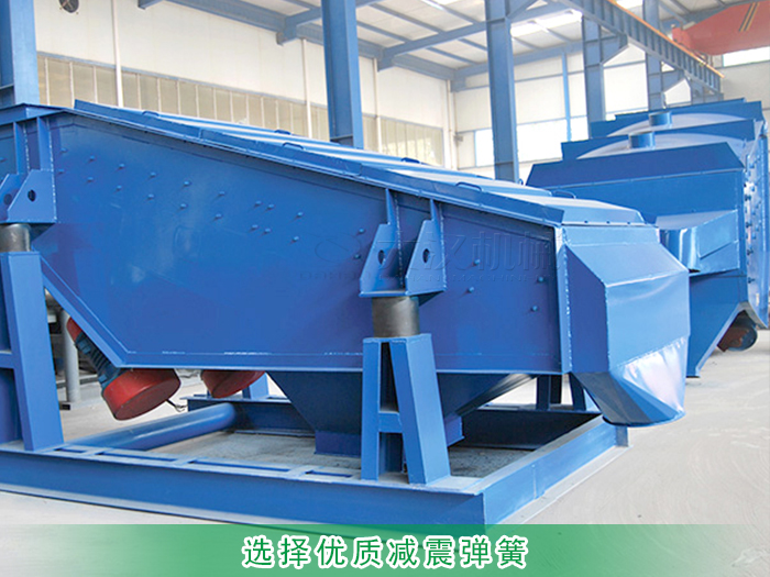 砂巖礦用振動篩因體型較大所以對減震彈簧的質量要求非常嚴格,劣質彈簧會在使用一段時間后,發生彈簧崩裂、彈性不足等問題來影響篩分效率,甚至會造成在篩分過程中箱體振裂。所以需要選用優質減震彈簧,它減震效果和承載力都很好,可有效延長設備使用的壽命。