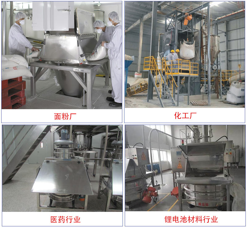 物料的投放、拆包、篩分和卸料,適用于粉料人工投料和篩分,拆包時由于集塵風機的作用,可以避免物料粉塵到處飛揚。